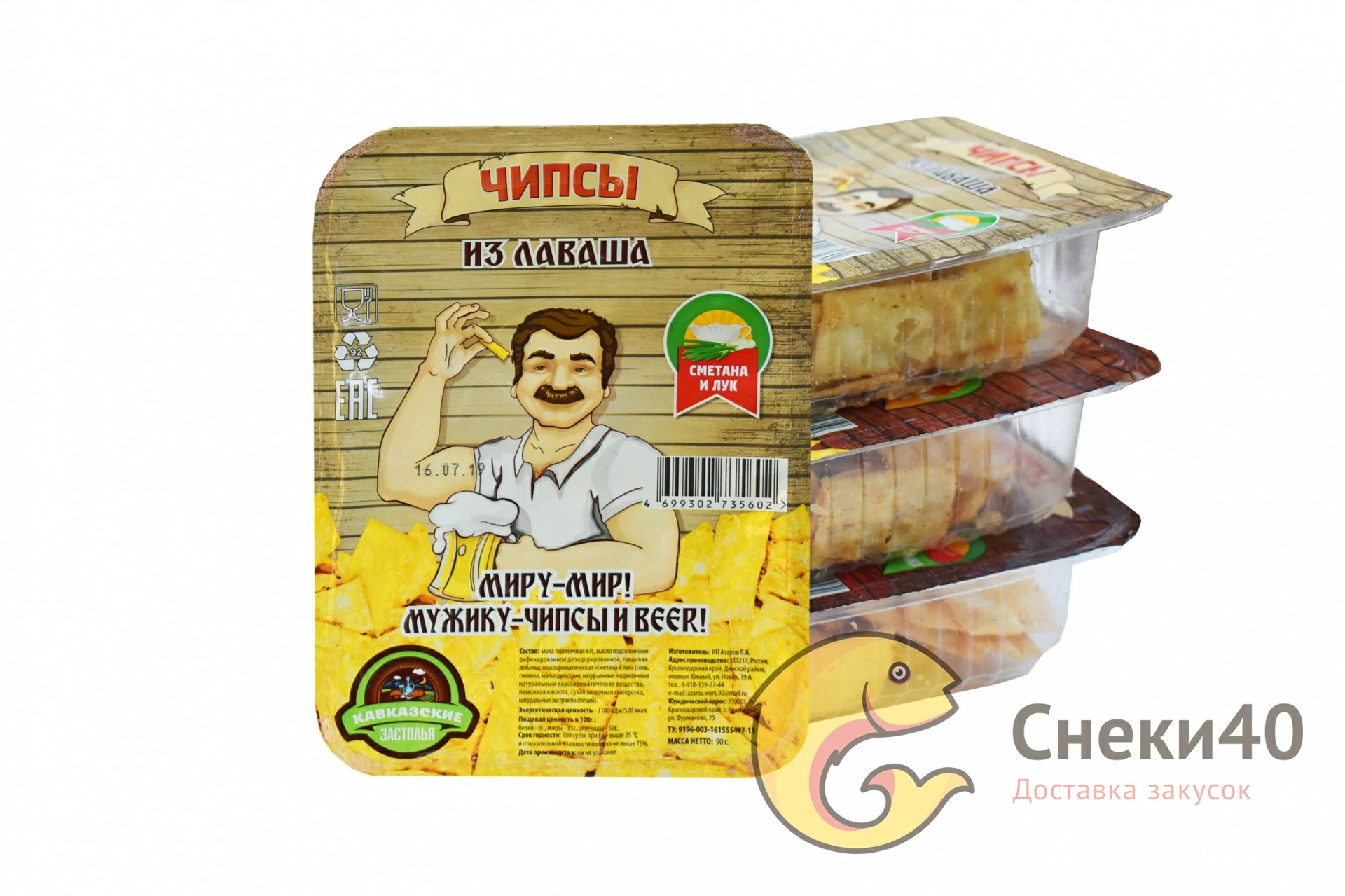 Чипсы из лаваша со вкусом Сметаны с луком "Кавказские застолья" контейнер 100г