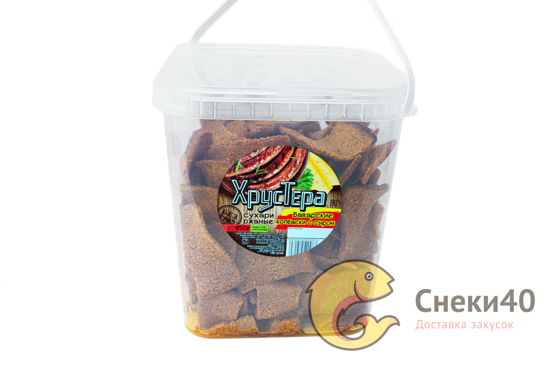 Сухари ржаные "ХрусТера" Баварские колбаски с сыром (ведро) 950г