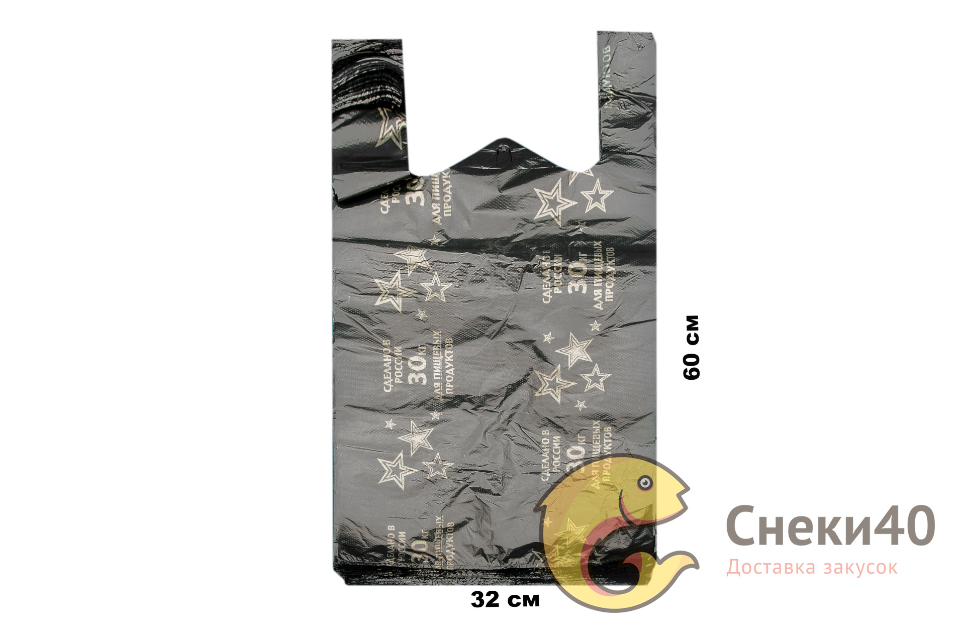 Пакет майка 32+16*60 17мкм черные Звёзды 100шт