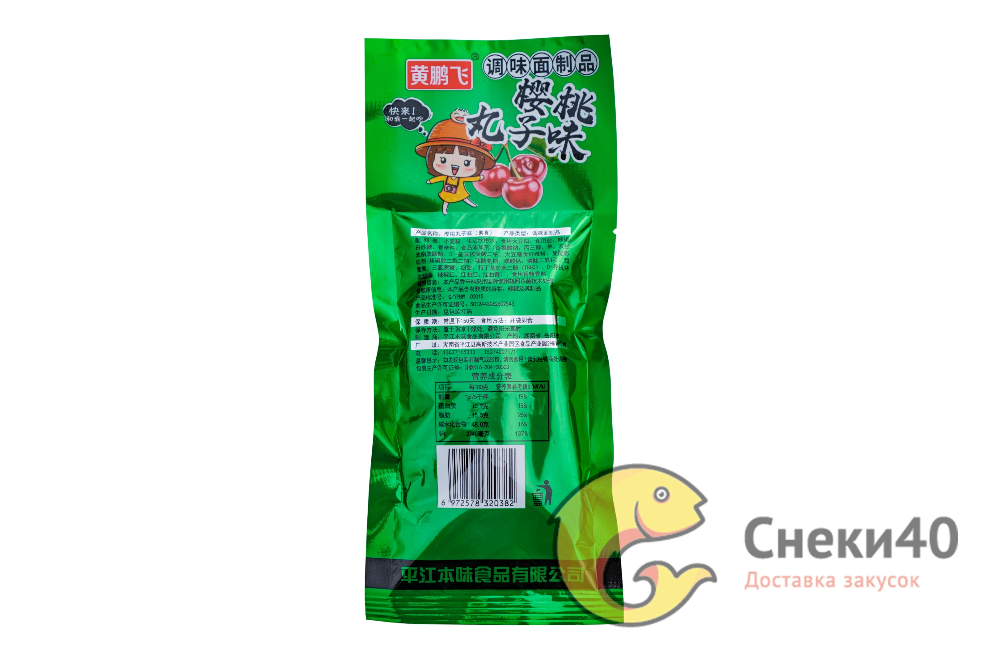 Оригинальный азиатский снек с насыщенным вкусом вишни — приправленные мучные шарики от бренда Huang Pengfei. Хрустящие, слегка сладкие, с ярким фруктовым ароматом — идеально подойдут для лёгкого перекуса, вечеринки или просто как необычная альтернатива привычным снекам.