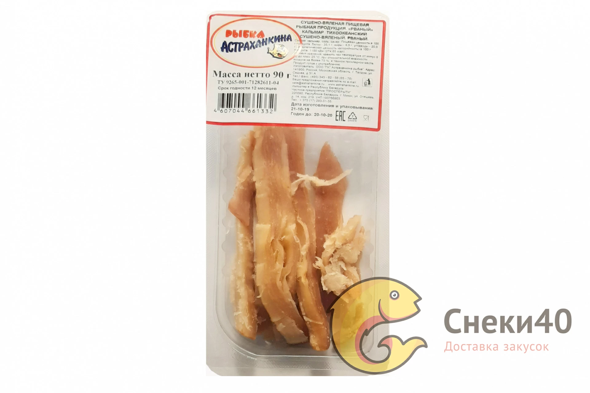 Рваный кальмар сушено-вяленый 90г (лоток) "Астраханкина"