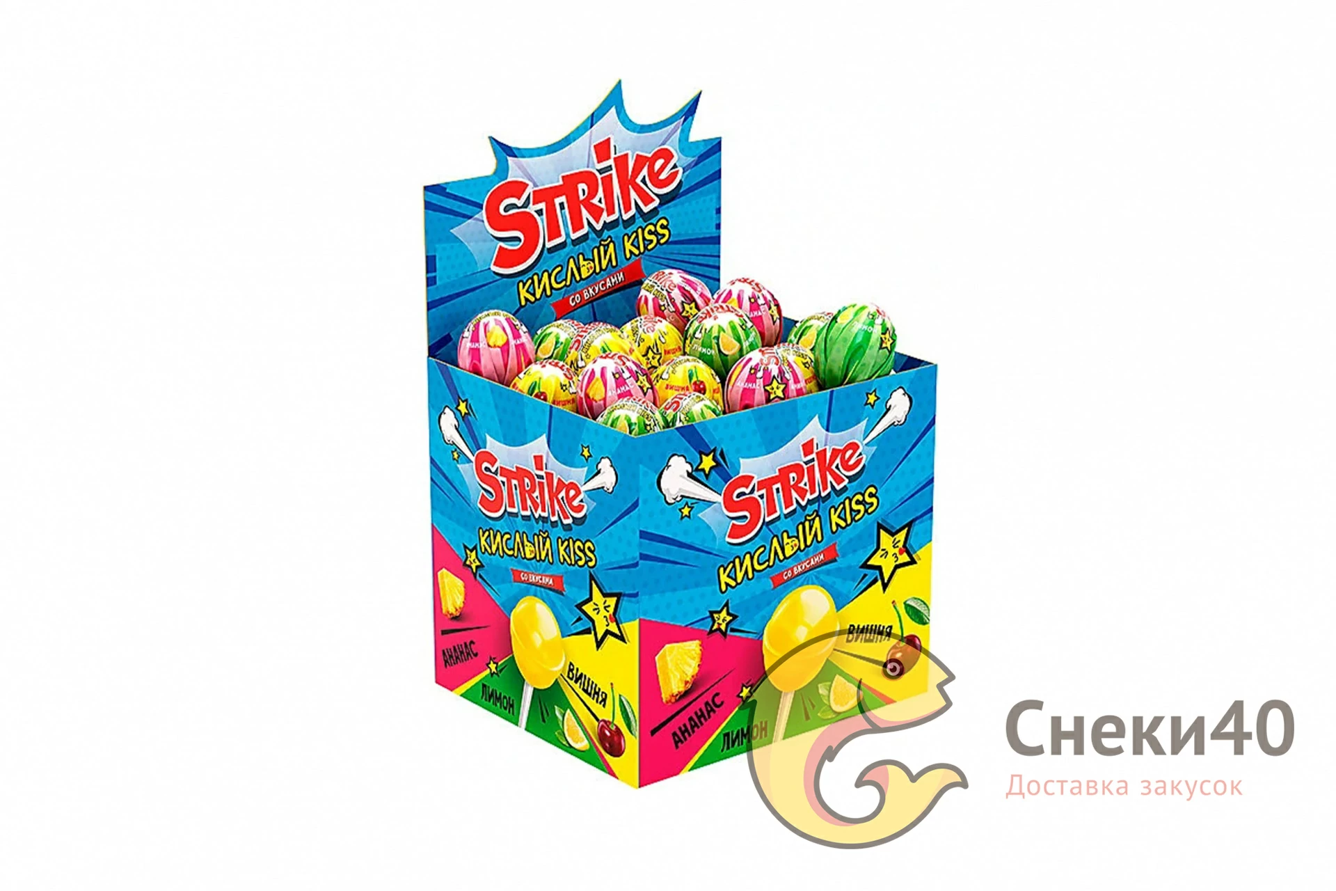 Карамель на палочке Strike Кислый кисс 11г (50шт)